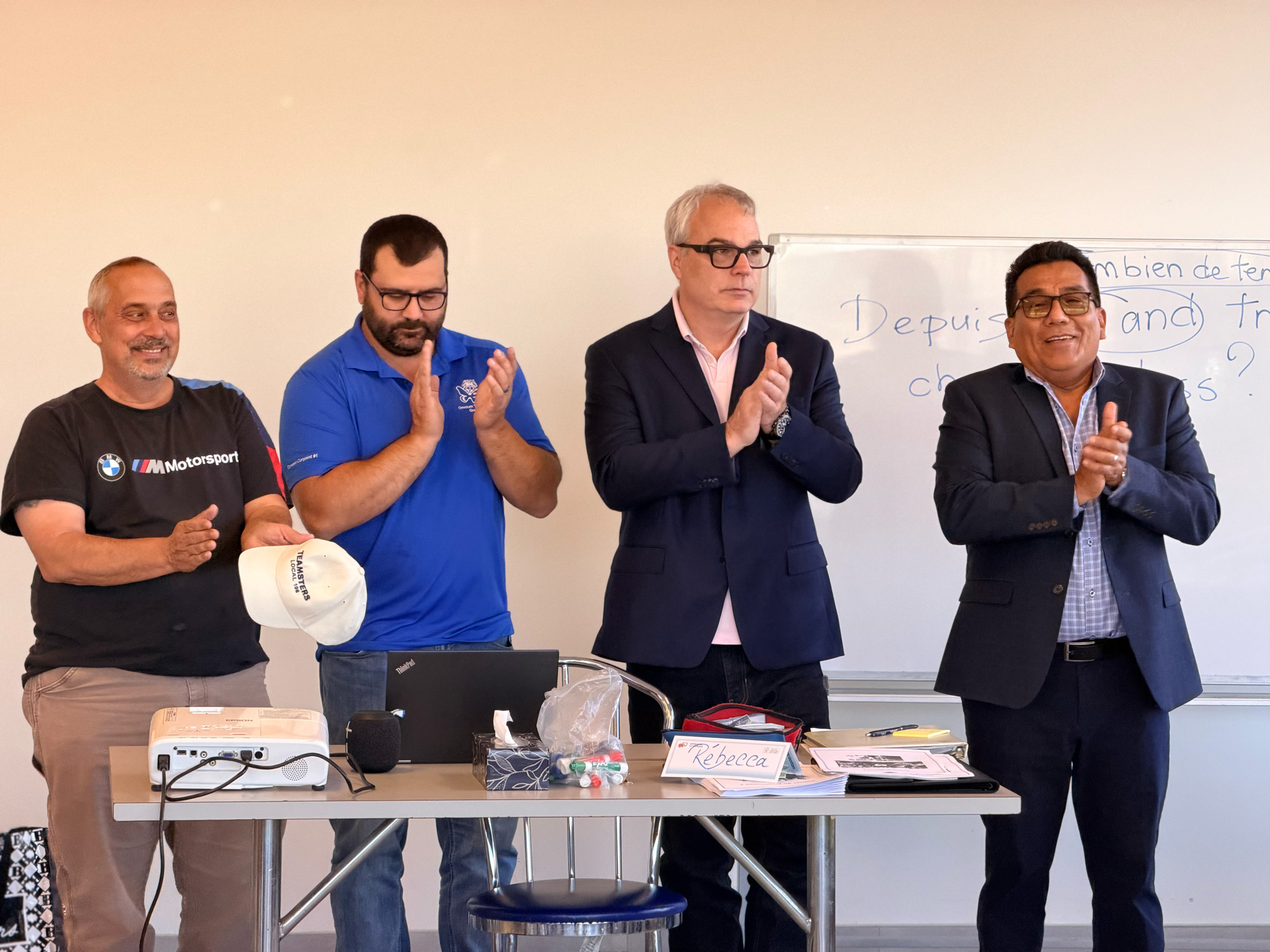 Depuis plusieurs années, le Local 106 se fait un fier défenseur de la francisation en milieu de travail. Chez Vêtements Peerless, où se côtoient des employés venus des quatre coins du monde, le français sert de langue commune, favorisant la cohésion et la compréhension mutuelle. Ces cours contribuent à renforcer cette unité et à offrir à chacun et chacune de meilleures perspectives professionnelles.